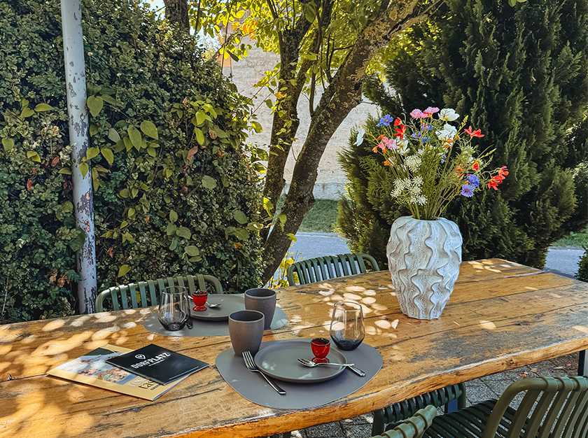 Unsere Dorfplatz Suite ist frisch renoviert – und genau der richtige Ort, wenn du mal raus willst aus dem Alltag. Drinnen erwarten dich ein helle, offene Räume mit viel Platz und allem, was man gerne um sich hat. Draußen: deine eigene Terrasse, auf der morgens der erste Kaffee einfach besser schmeckt.